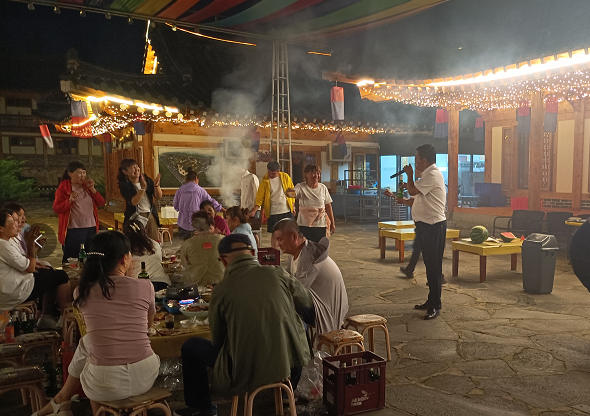 古村落無處不體現(xiàn)朝鮮民族的風(fēng)情,傍晚時分的古村落格外的迷人,等待大家的是地道的民餐。小棉襖人載歌載舞、共度美好團建時光。